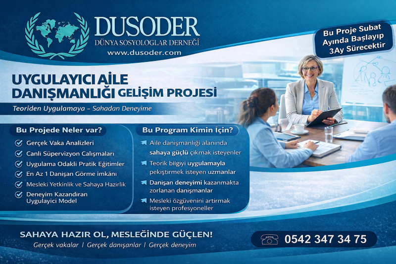 Dünya Sosyologlar Derneği (DUSODER) olarak, aile içi iletişimi güçlendirmek, değer aktarımını desteklemek ve ebeveynlere rehberlik etmek amacıyla “Aile Akademisi” programımızı başlatıyoruz.